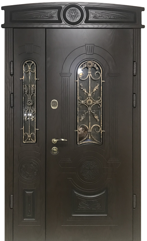 Арочная двустворчатая входная со стеклом дверь №32